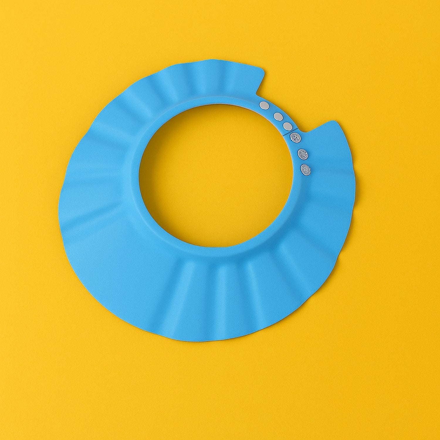 With multi-position snap buttons, the cap adjusts to different head sizes, ensuring a snug, slip-free fit for infants and toddlers. The wide, flared brim effectively channels water away from sensitive areas while allowing a full rinse. Ideal for babies who dislike water in their face or ears during baths.